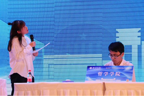 比赛正式开始之前,三位同学进行了团队展示。他们阐述了心理学与哲学的关系,回顾了心理学的过去,宣誓了哲学人与社会学人推动心理学发展、促进社会和谐的使命担当。“眼里有光,心向远方。我心飞扬,哲院启航。”这是他们铿锵的口号。